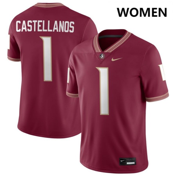 • #1 Tommy Castellanos FSU Garnet Womens Jerseys Player College Football