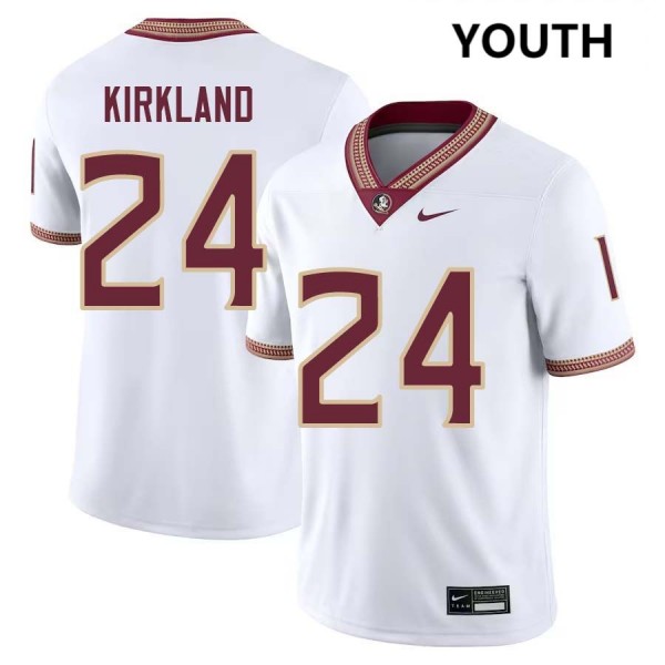 #24 K.J. Kirkland Florida State White Youth Jersey Game College Football 892945-257