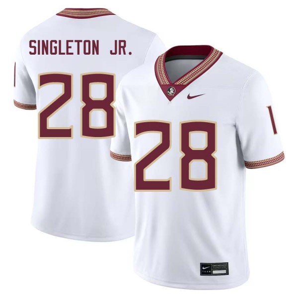 • #28 Samuel Singleton Jr. FSU Seminoles White Men Jersey Embroidery College Football