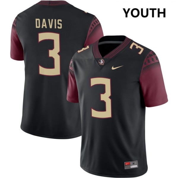 • #3 Kam Davis Florida State Seminoles Black Youth Jerseys Embroidery College Football