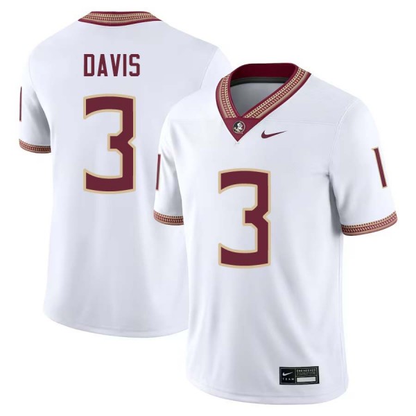 • #3 Kam Davis FSU Seminoles White Men Jerseys 2025 College Football