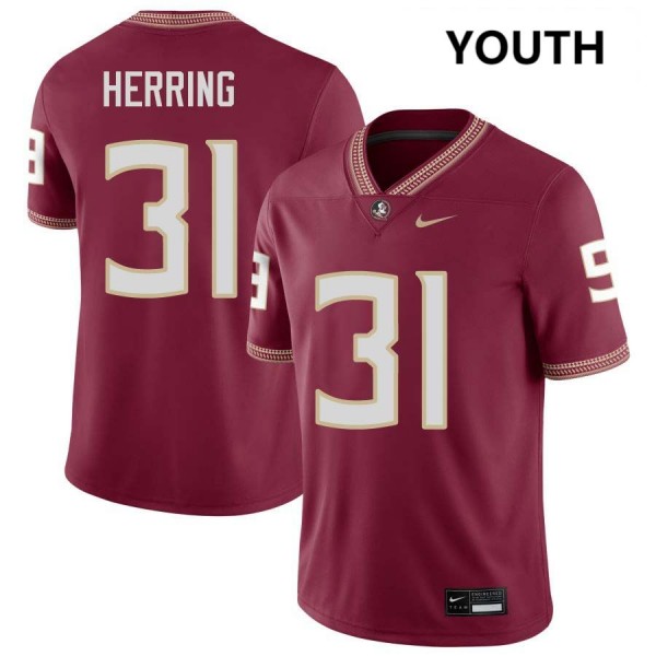 • #31 Elijah Herring Noles Garnet Youth Jersey University College Football