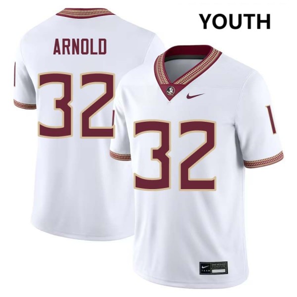 • #32 Mason Arnold Florida State White Youth Jersey Game College Football