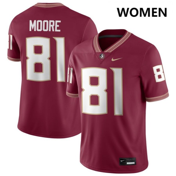 • #81 Elijah Moore Seminoles Garnet Women Jerseys Embroidery College Football